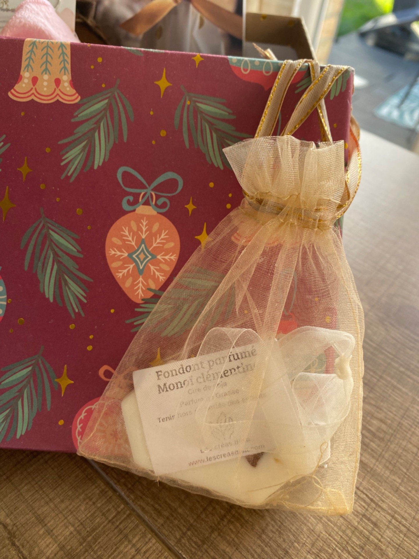 Une suspension parfumée au doux parfum monoï clémentine, qui parfumera vos armoires ou commodes, dans son joil sac organza.